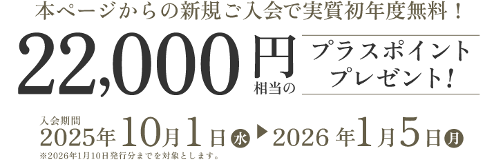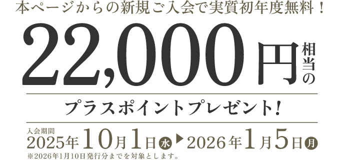 年会費 | 22,000円(税込)※年間300万円以上ご利用で次年度年会費(追加カード年会費含む)が無料になります。 |