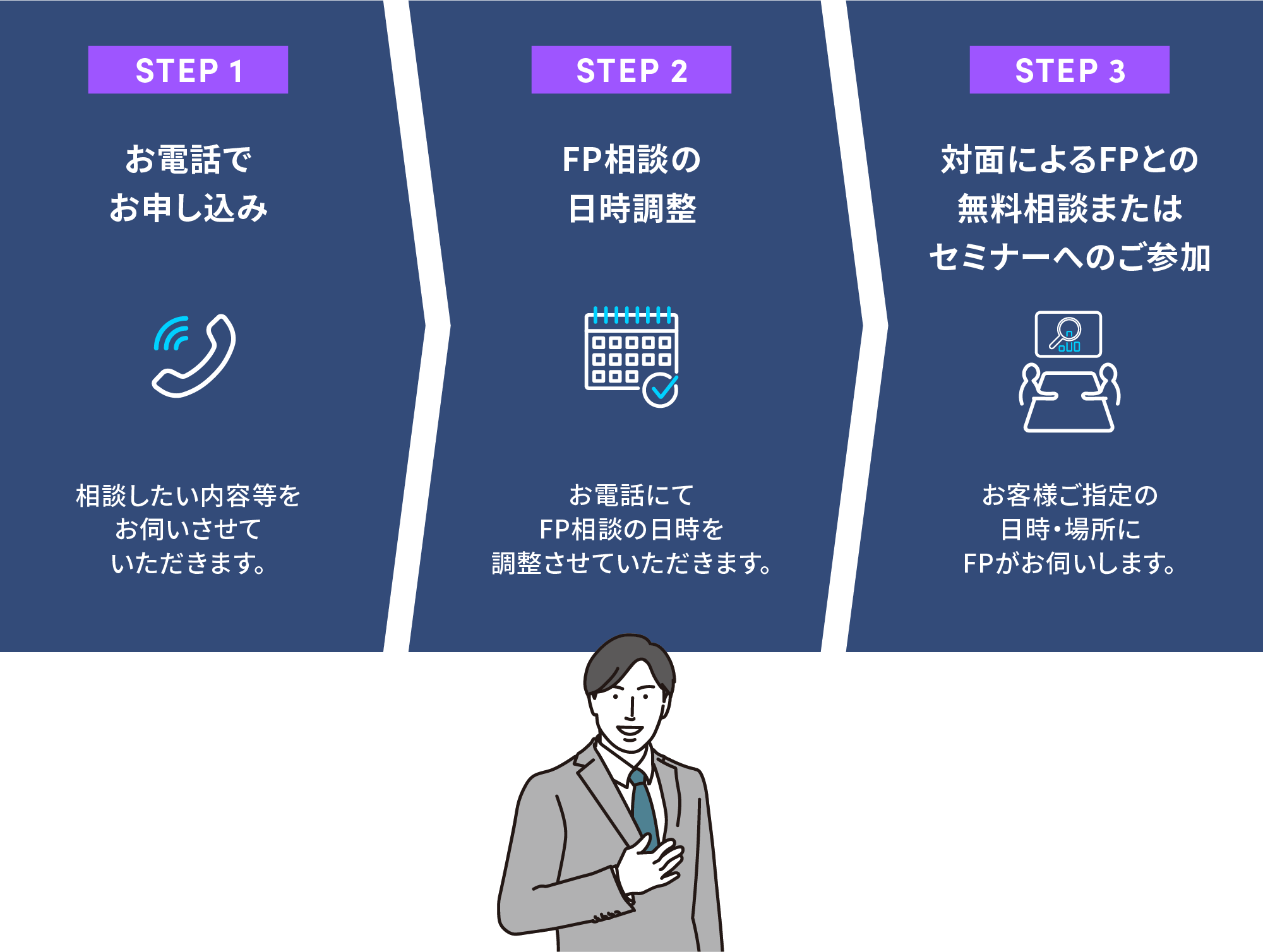 - ご自宅・お近くのレストランやカフェなど、お客様ご指定の場所までFPがお伺いいたします。