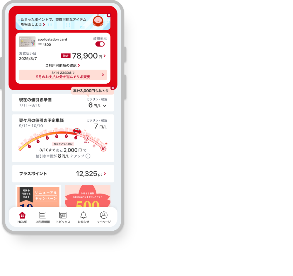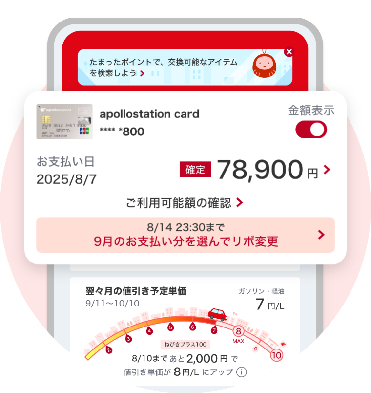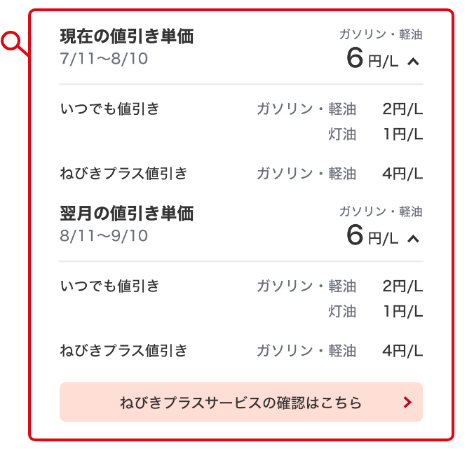 - 一部、ガソリン値引きサービス対象外のカードには表示されません。